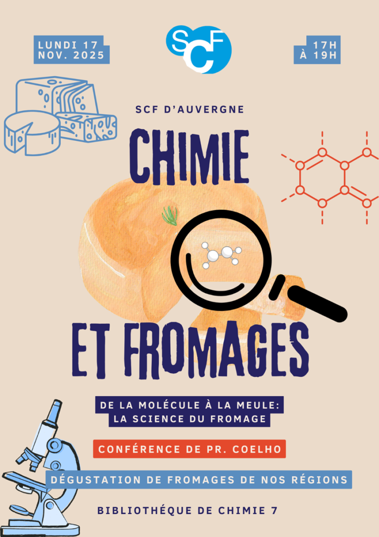 26 septembre 2024 Prix de communication orale et poster – SCF COA 2024 26 septembre 2024 Retour sur les 1ères Journées Scientifiques communes des sections régionales Centre-Ouest et Auvergne de la SCF – SCF COA 2024 10 avril 2024 Finale des Olympiades de la Chimie en Auvergne 2024 11 mars 2024 Premières journées communes des sections régionales Centre-Ouest et Auvergne 10 mars 2024 Olympiades de la Chimie – 17 et 31 janvier 2024 12 juin 2025 La SCF section Auvergne à la Journée académique UdPPC « Chimie et Vin » 17 novembre 2025 Moment scientifique et convivial sur la thématique « Chimie et Fromages » organisé par le réseau jeune SCF Auvergne 28 octobre 2025 Création de l’association des Olympiades de Chimie en Auvergne 9 avril 2025 Olympiades de la Chimie en Auvergne 2025 28 octobre 2023 Séminaire invité le 26/10 25 octobre 2023 Congrès de l’UdPPC: 28-31 octobre 2023 17 juillet 2023 Congrès SCF’23 à Nantes Navigation des articles 1 2 Navigation des articles 1 2