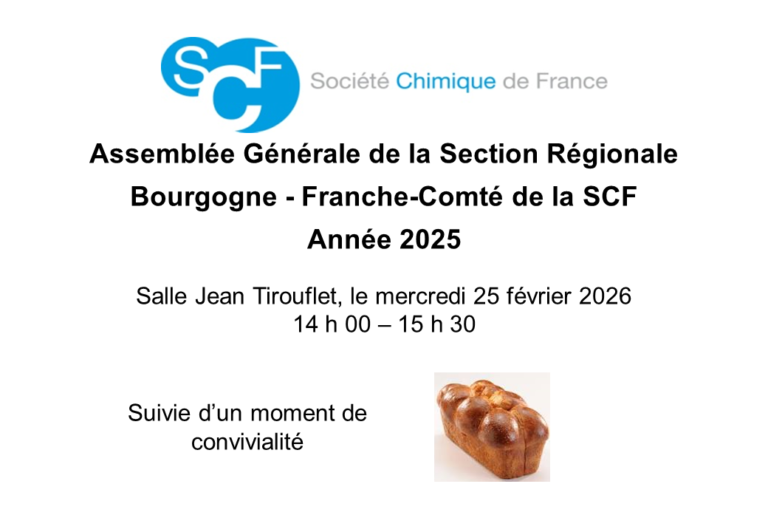 24 février 2026 Assemblée générale 2025 10 décembre 2025 Conférence Jean Tirouflet, 12 décembre 2025 17 novembre 2025 Interlab Symposium ICMUB-ICB on Metal-Organic Frameworks 20 mai 2025 GECOM-CONCOORD 2025 19 mai 2025 Pint of Science 2025 à Besançon et Belfort 16 mai 2025 Olympiades de la chimie 2025 4 avril 2025 Concours C’Génial 2025 16 janvier 2025 Assemblée générale 2024 4 décembre 2024 Conférence Jean Tirouflet, 9 décembre 2024 23 mars 2024 Concours C’Génial 2024 3 mars 2024 18ème journée université-industrie – Besançon, 22 mars 2024 1 janvier 2024 Soutien aux évènements Navigation des articles 1 2 3 4 5 Navigation des articles 1 2 3 4 5