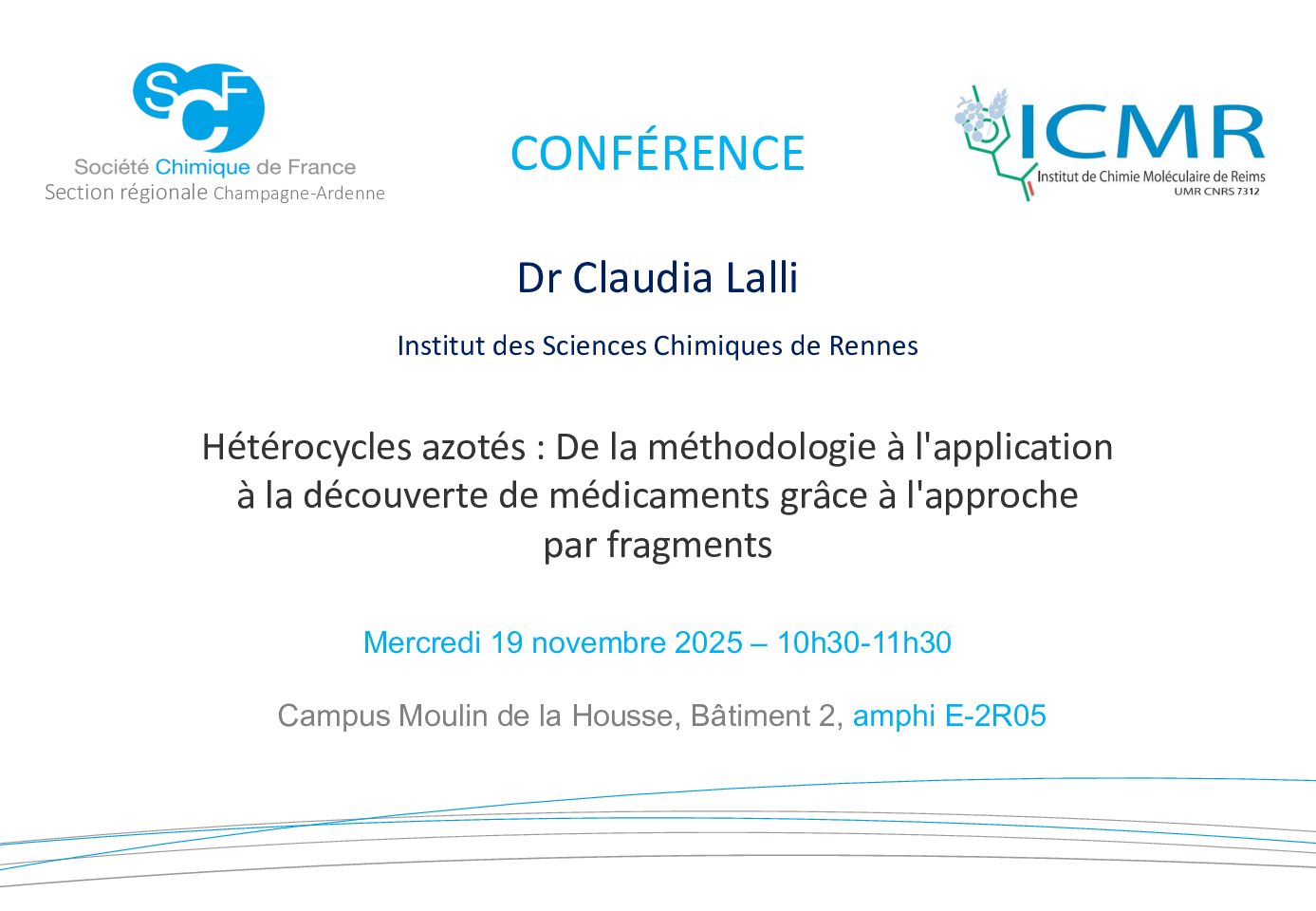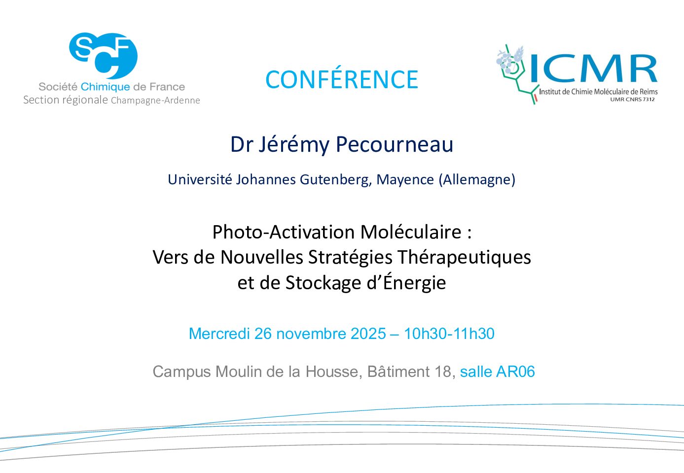 19 décembre 2025 Rémi Pereira, lauréat du prix de thèse SCF-CA 16 décembre 2025 Conférence 28 novembre 2025 16 décembre 2025 Conférence 26 novembre 2025 16 décembre 2025 Conférence 19 novembre 2025 27 octobre 2025 Fête de la Science 2025 (Village des Sciences de Reims) 27 octobre 2025 Conférence 11 septembre 2025 27 octobre 2025 Conférence 18 juin 2025 27 octobre 2025 Remise de prix aux Olympiades de la Chimie en Champagne-Ardenne 27 octobre 2025 Bravo à Jean-Bernard Behr, membre distingué 2024 de la SCF-Champagne-Ardenne 27 octobre 2025 Conférence 6 janvier 2025 31 octobre 2024 Conférence 21 novembre 2024 31 octobre 2024 Fête de la Science 2024 (Village des Sciences de Reims) Navigation des articles 1 2 3 4 5 Navigation des articles 1 2 3 4 5